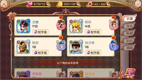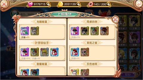游戏中的角色以名片形式展示,各具风格与特色,玩家可以通过获取、升级等操作来提高角色能力。角色按职业划分,攻防治疗各司其职,搭配灵活,发挥持久战的优势。