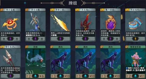过牌卡(2至3张)、增益卡(3张)、生物装备(3张)、角色装备(1到2张),卡组厚度保持在18至20张之间,这样构建的卡组才能更有竞争力。
