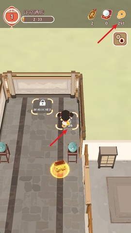 7、客人在离开后留下的金币会散落在地上,走近后可以及时捡起,为你的酒店积累财富。