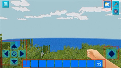 2、我们选择创造模式,这里你将拥有无尽的材料和自由,使用左右两边的按钮控制角色移动与跳跃,畅享自由建造的乐趣。